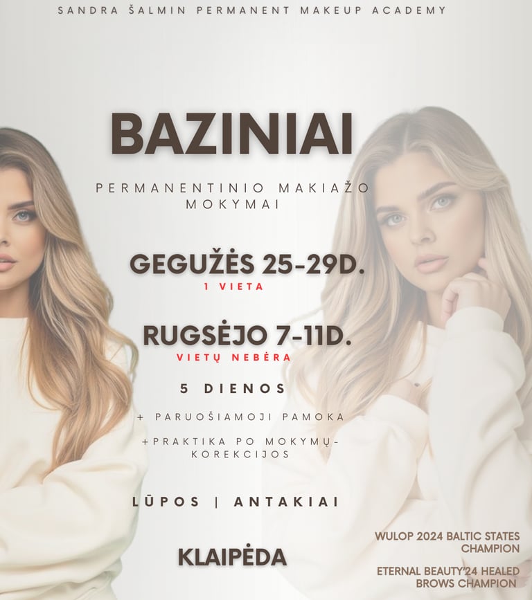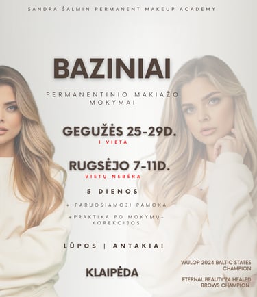 Baziniai 3 etapų ilgalaikio makiažo mokymai laukia tavęs! Išmok antakių ir lūpų geidžiamiausias technikas ir užkariauk grožio pasaulį. Tai išskirtinė ir pati stipriausia mokymų programa, kurios daugiau nerasi niekur.